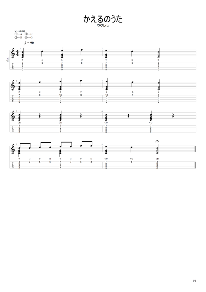 あせらずゆっくり弾いてみましょう。「ゲロゲロ」の部分が少し難しいですが、何度も練習すればきっと弾けるようになります。